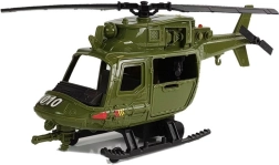 Elicopterul verde, mare, cu rotori rotativi și schiuri stabile extinde acțiunea cu recunoaștere și intervenții de la înălțime. Ușile deschise și detaliile cabinei sporesc realismul jocului.