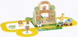Sunt incluse poarta ZOO, animăluțe, îngrijitorul zoo, copac, semnalizare rutieră și vehicule, inclusiv remorcă – ideal pentru crearea propriilor povești. Drumurile flexibile permit construirea de trasee după imaginație și extinderea cu alte seturi.