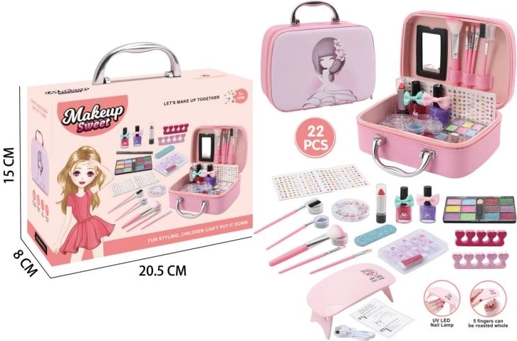 Această drăgălașă valiză cosmetică Micuța Lady îi va încânta pe toți copiii creativi care adoră să îi imite pe adulți. Înăuntru găsesc tot ce au nevoie pentru o transformare jucăușă – farduri de pleoape, rujuri și lacuri de unghii, precum și alte accesorii mărunte. Conținutul este adaptat copiilor și potrivit pentru joacă în siguranță.