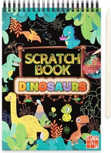 Cartea de zgâriat cu dinozauri este o activitate creativă ideală pentru micii iubitori ai preistoriei. Suprafața închisă răzuibilă ascunde imagini viu colorate, care apar după o zgâriere ușoară cu stiloul inclus. Copiii se vor bucura de ore de distracție și își vor exersa răbdarea, concentrarea și motricitatea fină.