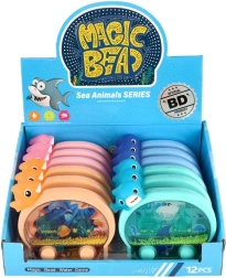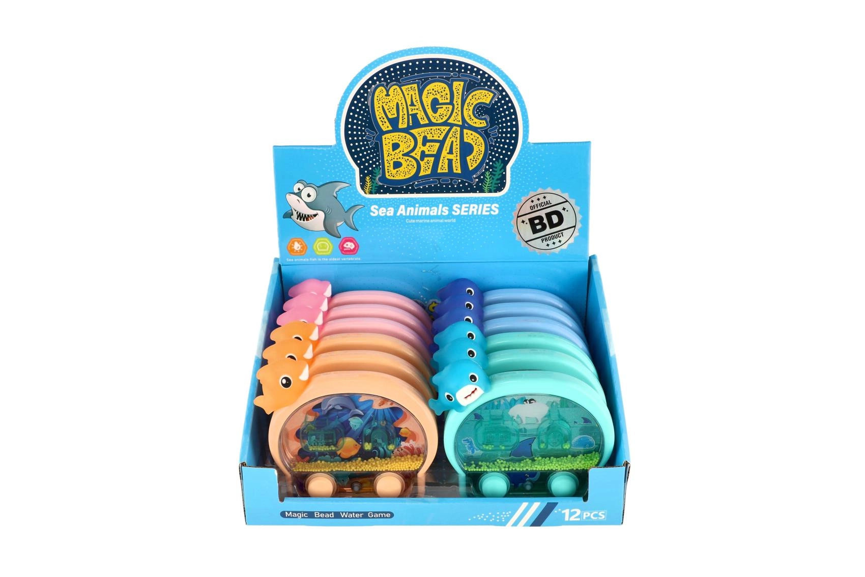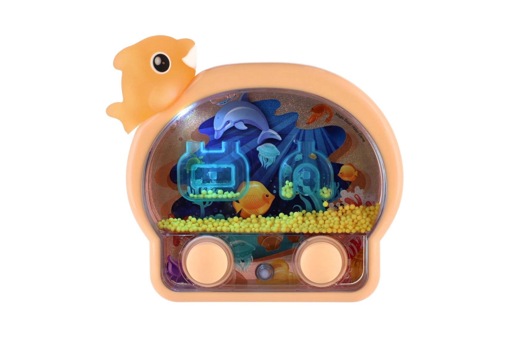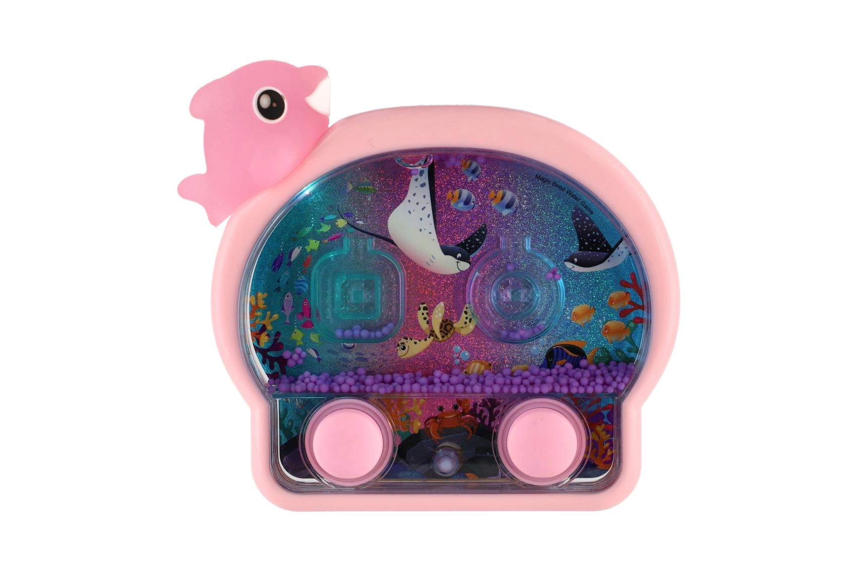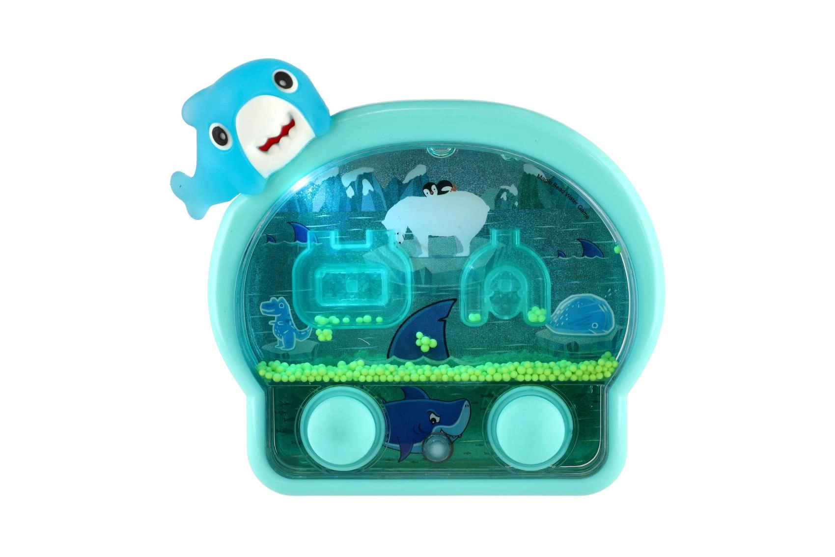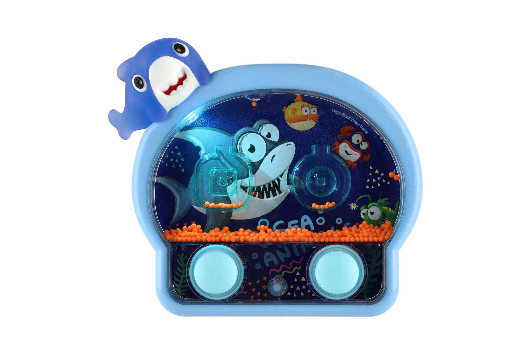 Un joc de apă de buzunar, distractiv, în formă de animal marin, animă joaca acasă și în călătorii. Prin apăsarea butoanelor pui în mișcare inelele și biluțele din apă și încerci să le nimerești în ținte. Jocul dezvoltă motricitatea fină, răbdarea și atenția, iar datorită efectului luminos este amuzant și pe întuneric.