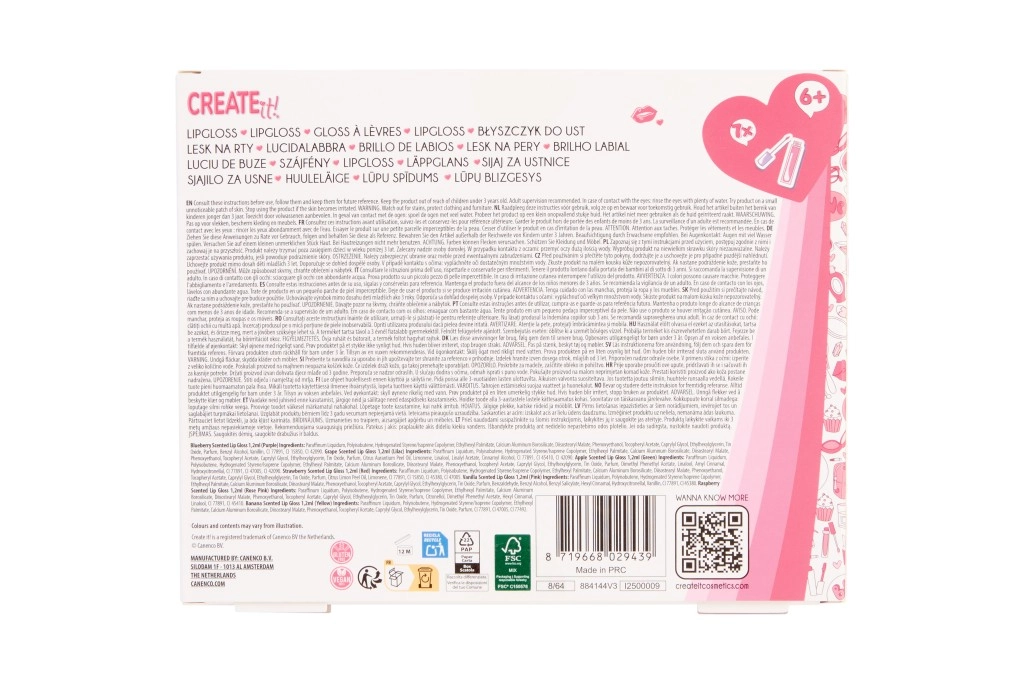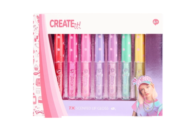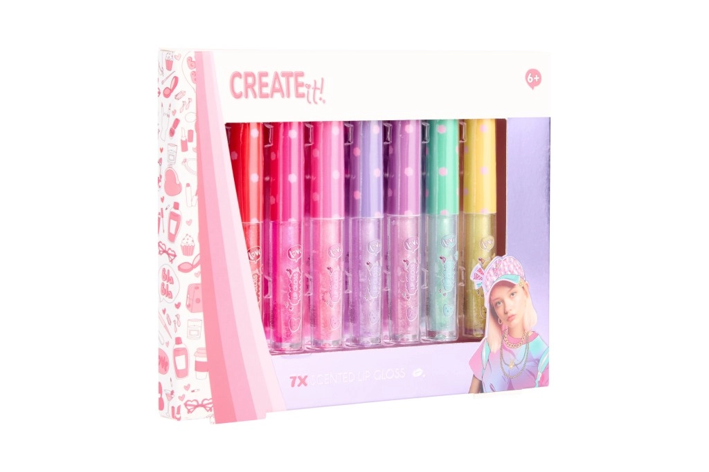 Setul CREATE IT! include șapte luciuri colorate cu finisaj sclipitor, care luminează frumos buzele și le oferă o tentă discretă de culoare. Textura lejeră se aplică ușor și este potrivită pentru machiajul zilnic. Fiecare luciu are un parfum diferit, astfel încât te poți bucura de distracție și creativitate la alegere.