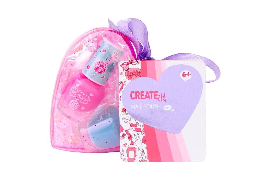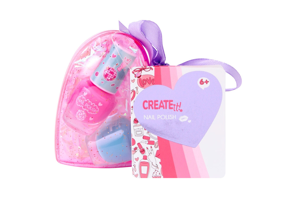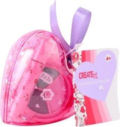 Set cosmetic drăguț pentru copii în etui în formă de inimă CREATE IT! care aduce tot ce ai nevoie pentru machiaj jucăuș. Înăuntru găsești glossuri de buze, farduri de pleoape, rimel și lacuri de unghii – ideal pentru primele experimente cu machiajul. Datorită carcasei transparente în formă de inimă cu sclipici și panglicii mov este perfect atât ca dar, cât și pentru călătorii. Sunt disponibile trei variante diferite.