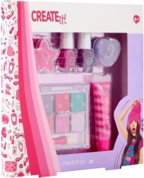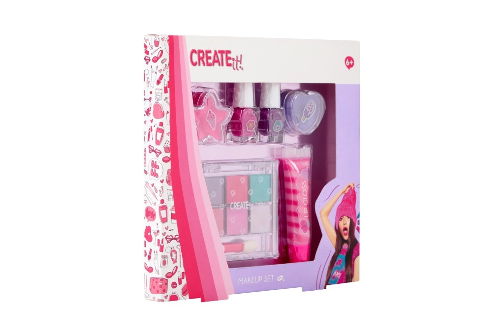 Descoperă magia culorilor cu setul de machiaj CREATE IT! Lila Turquoise. Copiii pot încerca machiajul în siguranță, potrivi nuanțe și crea propriul stil – de la pleoape sclipitoare la unghii colorate și șuvițe jucăușe.