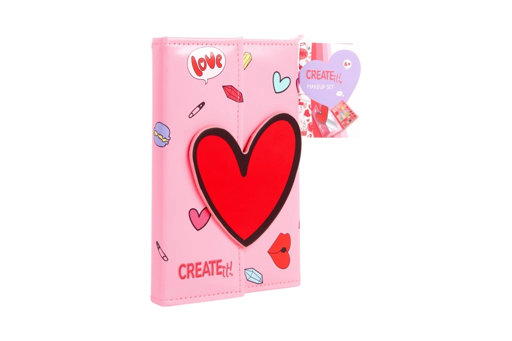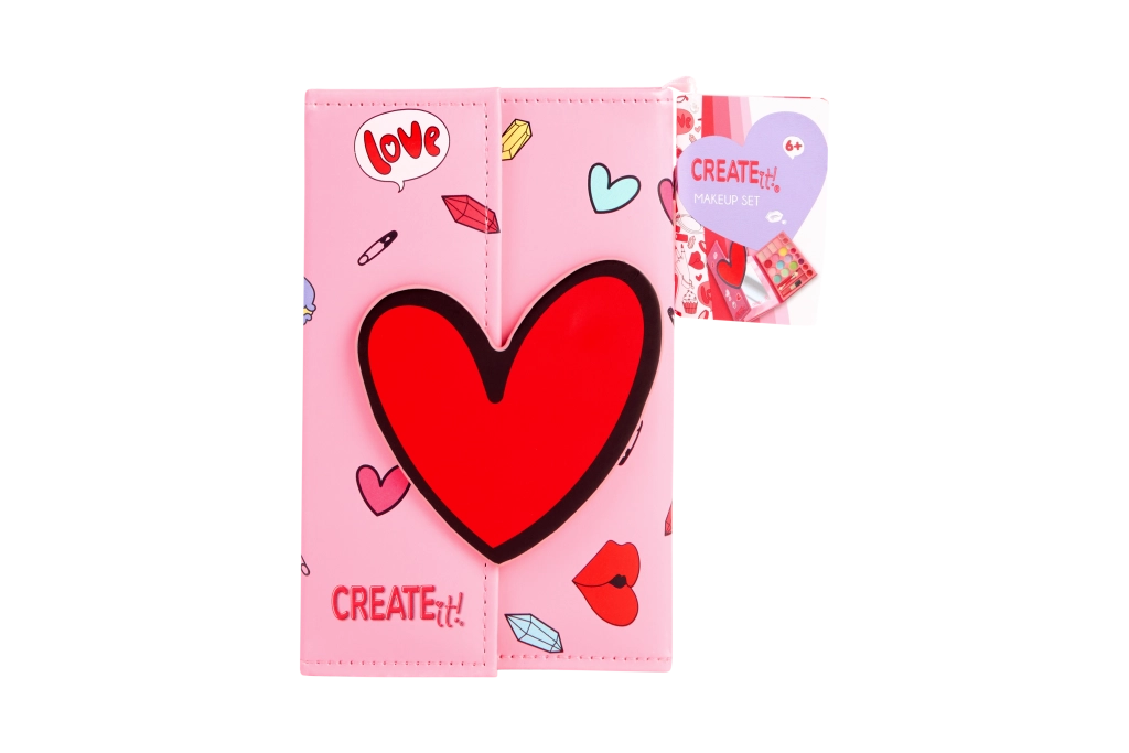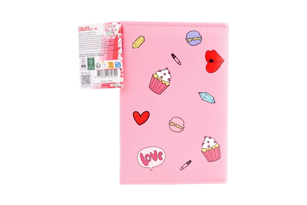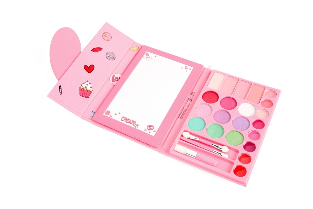 Descoperă lumea creativă a machiajului cu setul pentru copii CREATE IT! sub forma unei cărți magnetice. Datorită etuiului pliabil ingenios cu inimioară, totul este ordonat, ușor de transportat și pregătit pentru folosire imediată. Paletele colorate și accesoriile încurajează experimentarea sigură, dezvoltă imaginația și motricitatea fină.