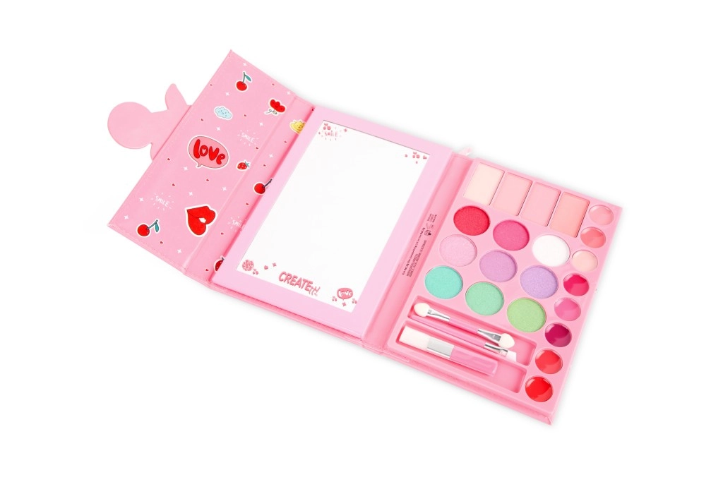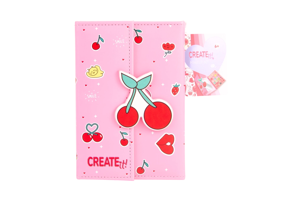 Această trusă creativă de machiaj în format de carte va încânta începătoarele și pasionatele de machiaj. La deschidere, găsești o organizare bine gândită a culorilor și instrumentelor pentru a crea un look proaspăt de zi sau un machiaj mai accentuat de seară. Închiderea magnetică păstrează conținutul în siguranță, iar designul drăguț cu cireșe face din paletă un cadou minunat.