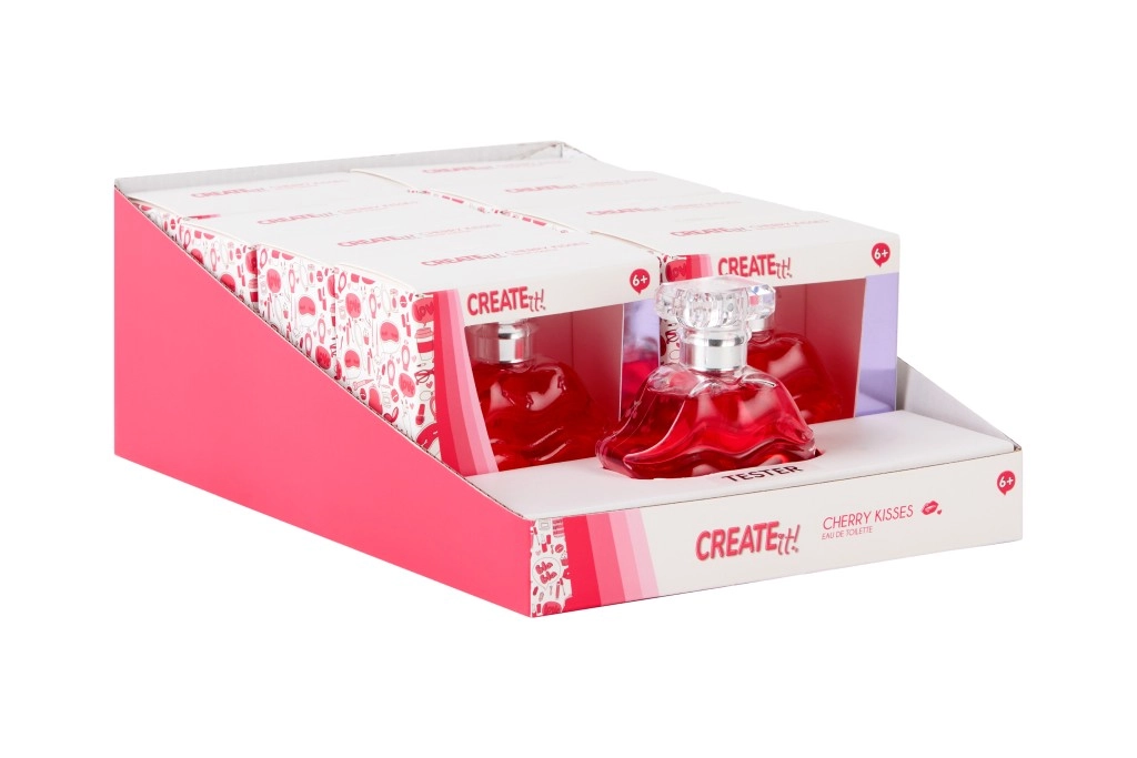 Descoperă un parfum jucăuș și proaspăt care îți luminează fiecare zi. Apa de toaletă Create it! Cherry Kisses, într-un flacon original în formă de buze, aduce note suculente de cireșe cu o tușă ușoară de vară. Ideală pentru tinere și pentru iubitoarele parfumurilor dulci care vor să miroasă proaspăt și optimist pe tot parcursul zilei.