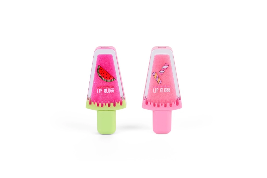Forma de înghețată cu mâner colorat și sclipici transformă machiajul obișnuit în distracție – perfect pentru purtare zilnică și ca idee de cadou.