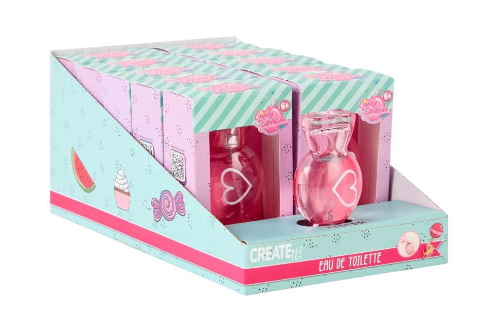 Cutia colorată Candy Explosion și flaconul roz în formă de inimă fac din acest parfum un cadou minunat pentru micile cochete.