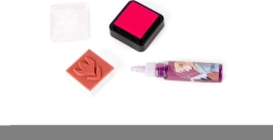 - Echipare bogată: autocolante, pietricele, pix cu pom‑pom, sclipici, ștampilă și cerneală