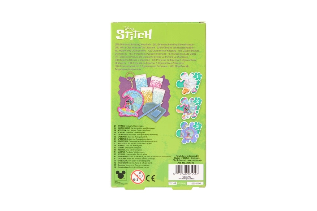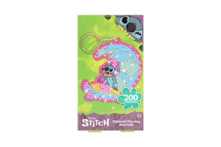 Descoperă creația distractivă și relaxantă cu setul DIY de pictură cu diamante. Motivul Stitch surfer se remarcă prin culori vii și strălucirea pietricelelor mici, pe care le așezi simplu cu stylusul inclus. Brelocul final este ușor, rezistent și gata să-ți decoreze cheile sau geanta.