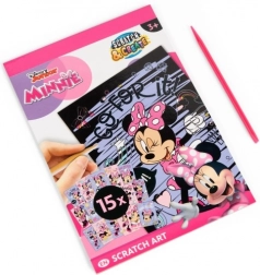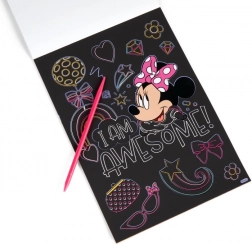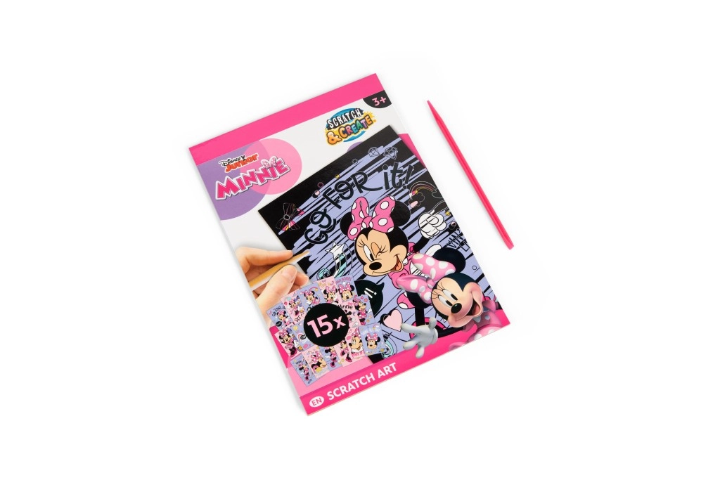 Sub stratul negru se ascund culori vii și motive cu MINNIE, pe care copiii le dezvăluie cu scobitoarea – o creație simplă, distractivă și captivantă.