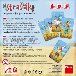 Alungați plictiseala cu un joc de cărți rapid pentru copii de la 5 ani. Dino Sperietorul antrenează spiritul de observație, memoria și reacțiile rapide. Jucătorii completează culoarea lipsă a îmbrăcămintei sperietorii, iar cine rămâne primul fără cărți câștigă. Reguli simple, 72 de cărți imprimante pe ambele fețe, joc pentru 2–6 jucători, fabricat în Cehia și distins cu certificatul Jucărie sigură și de calitate.