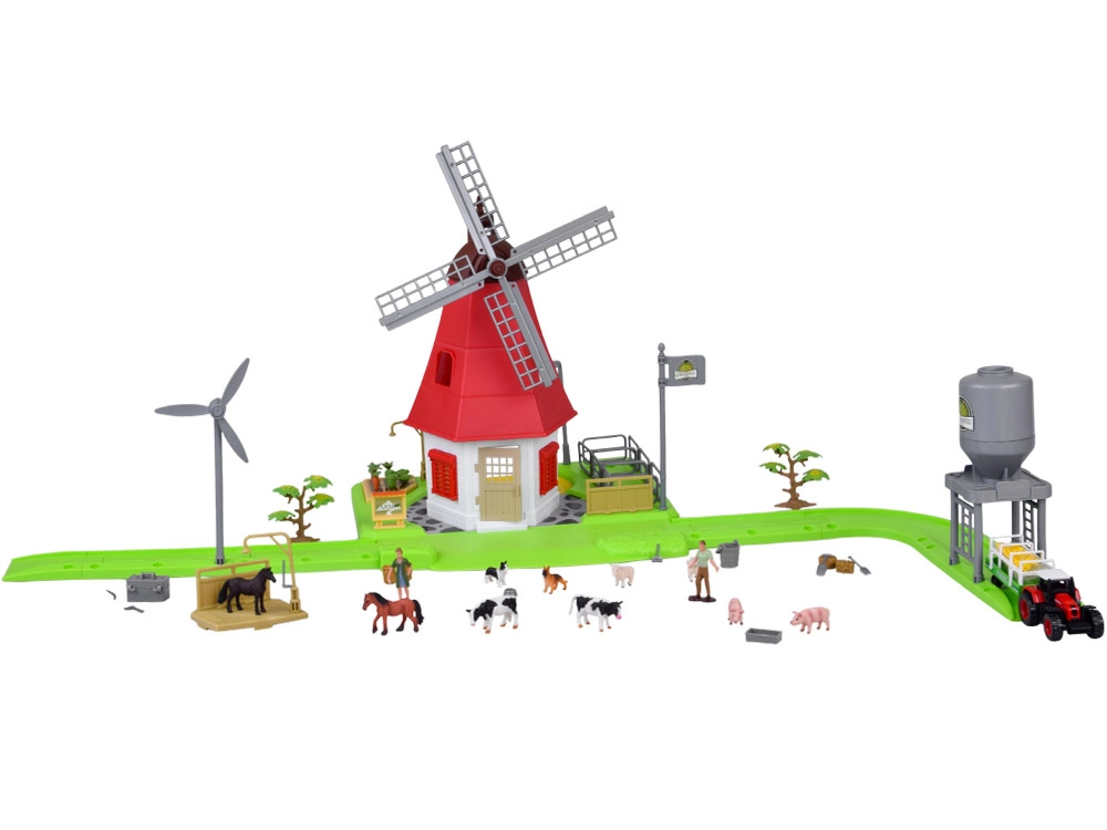 Acest set detaliat le permite copiilor să devină adevărați fermieri. Elementul dominant este o moară de vânt albă cu două niveluri și palete rotative. Ușile care se deschid, obloanele roșii și peretele posterior deschis facilitează accesul la interior. Împrejurimile sunt completate de grădiniță, țarcuri pentru animale, siloz, semnalizare rutieră și copaci decorativi.