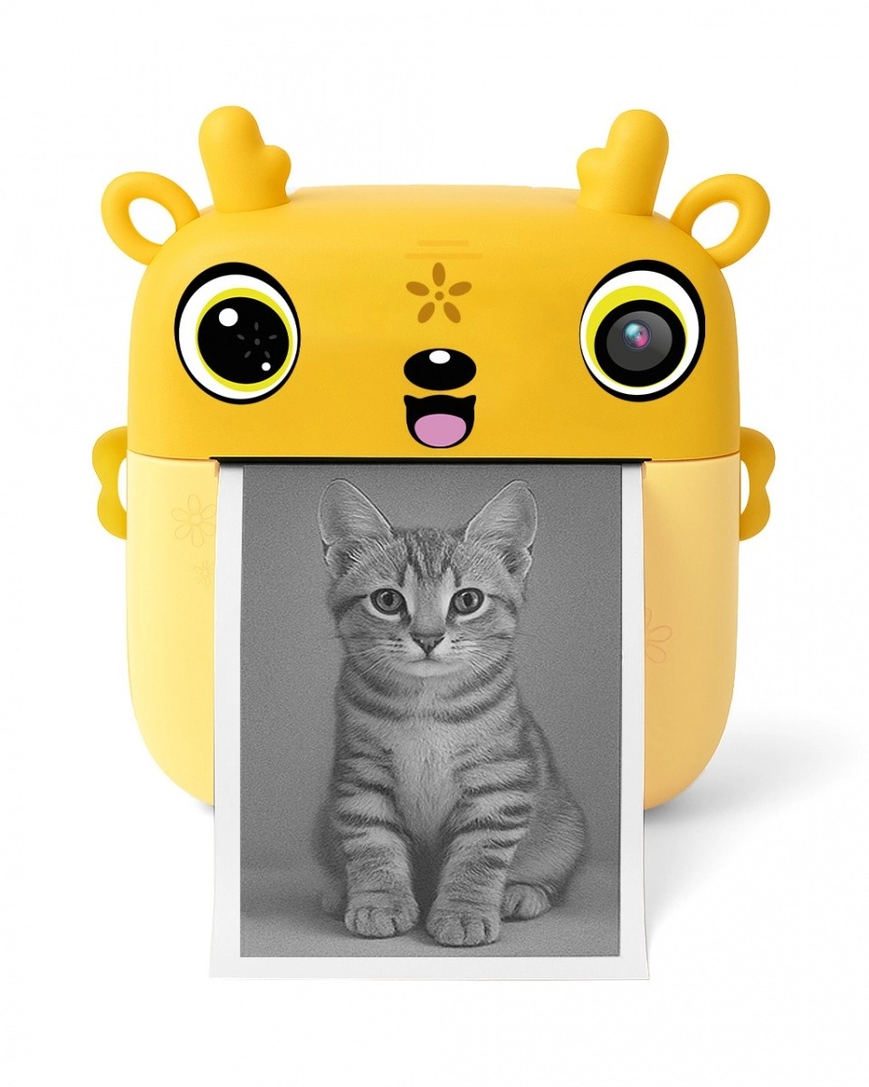 Dispozitivul imprimă fără cerneală pe hârtie 57 × 25 mm, este economic și ecologic și suportă carduri microSD de până la 32 GB pentru arhivarea fotografiilor (până la 8 Mpx, interpolat) și a videoclipurilor (până la 1080p, interpolat). Încărcarea și transferul de date se fac prin USB‑C, iar bateria de 1000 mAh asigură o autonomie îndelungată. Distracția este completată de jocuri logice care dezvoltă atenția și răbdarea.