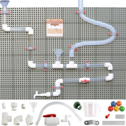 Setul este realizat din materiale de înaltă calitate și rezistente și este pe deplin compatibil cu panourile STEM MASTERKIDZ (de perete și independente). Pentru experimente și mai dinamice se poate achiziționa separat pompa de apă. Sistemul este potrivit pentru copii de la 3 ani.