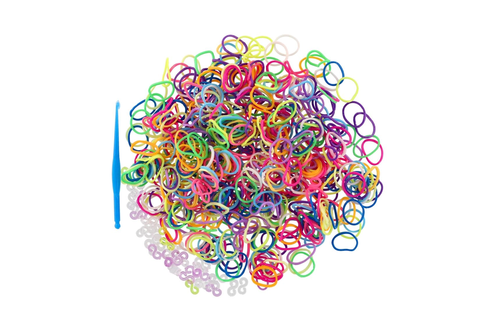 - 600 bucăți de elastice în culori vii pentru modele variate