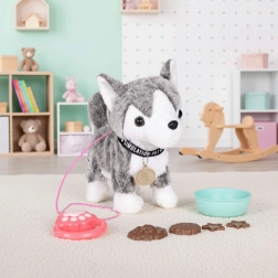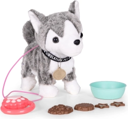 Oferiți-le copiilor primul lor „animăluț de companie”, care nu face mizerie și totuși încântă prin reacții realiste. Husky-ul interactiv răspunde la controlerul de pe lesă – face pași înainte, dă din coadă, își clatină capul și redă melodii. Datorită accesoriilor, copiii se vor bucura de hrănire de simulare și îngrijire, care dezvoltă motricitatea fină și abilitățile sociale.