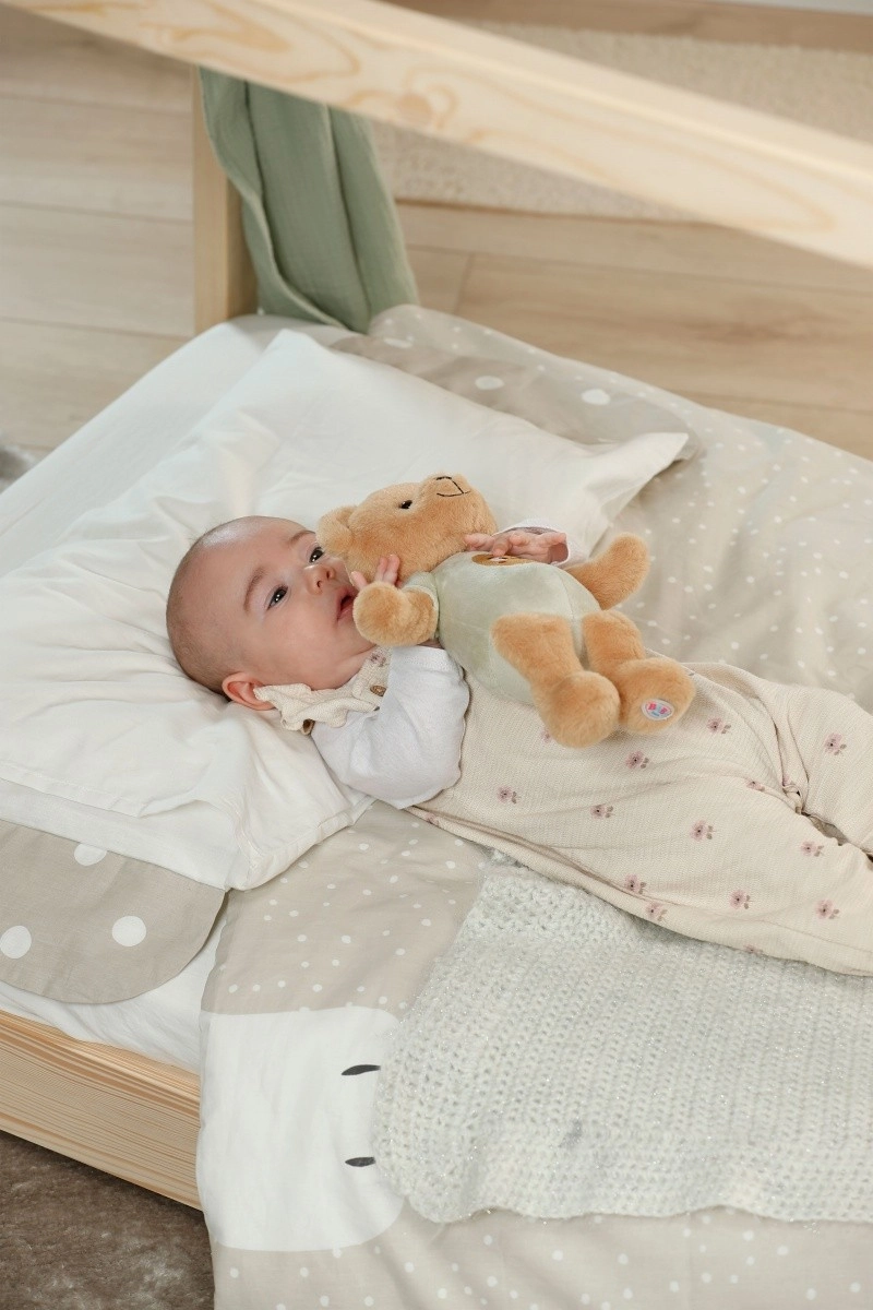 Ursulețul de pluș BABY born Teddy este conceput pentru cele mai mici mânuțe – ușor, moale și perfect de îmbrățișat. Datorită dimensiunii compacte de 26 cm, copiii îl pot prinde ușor și ține atât la somn, cât și pe parcursul zilei. Nuanțele pastelate armonioase au un efect liniștitor și se potrivesc frumos în camera copilului.