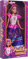 Descoperă fermecătoarea păpușă Lily în costum tradițional mexican cu model floral. Datorită brațelor și picioarelor mobile, este ideală pentru joacă creativă și pentru poziționare. Păpușa are păr lung șaten cu bentiță roz, rochie detaliată cu curea și accesorii. Execuție de calitate, culori superbe și ambalaj estetic care o fac cadoul perfect pentru copii de la 3 ani.