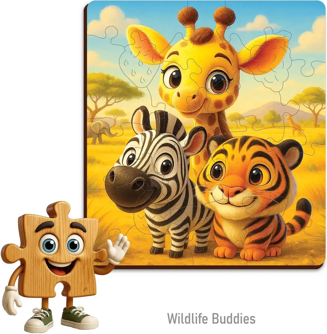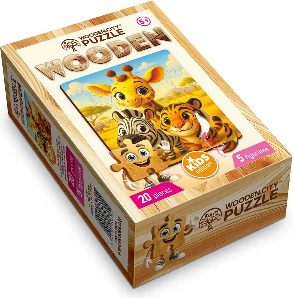 Puzzle-ul din lemn Prieteni de la WOODEN CITY aduce copiilor bucuria asamblării și dezvoltarea motricității fine. Fiecare piesă este realizată cu precizie și atenție deosebită pentru o potrivire perfectă a imaginii. Prelucrarea cu laser asigură margini curate și netede, astfel încât piesele sunt plăcute la atingere și sigure pentru mâinile mici.
