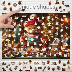Descoperă bucuria asamblării cu puzzle-ul din lemn cu un motiv de Crăciun fermecător: ursuleț cu căciulă și pulover tricotate. Piesele din lemn de calitate, cu margini netede datorită tăierii laser, se îmbină perfect și oferă durabilitate îndelungată. Imaginea finală, de aproximativ 54 × 39,4 cm, devine o superbă decorațiune sezonieră.