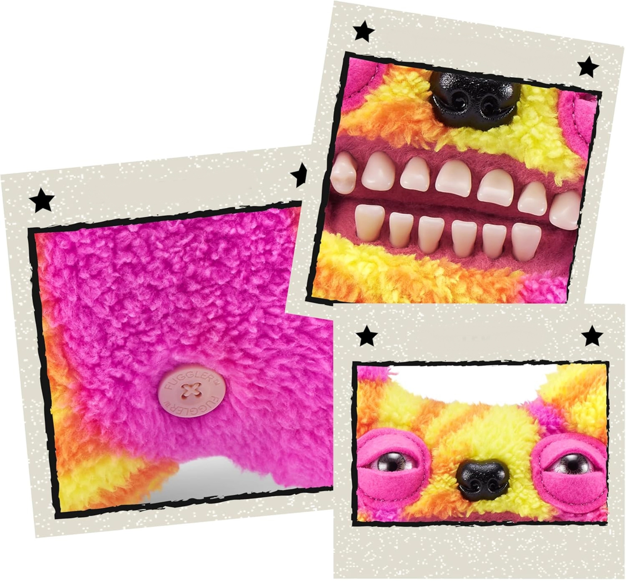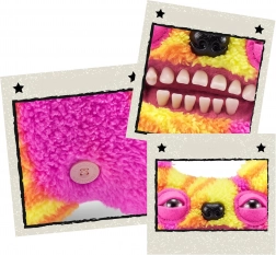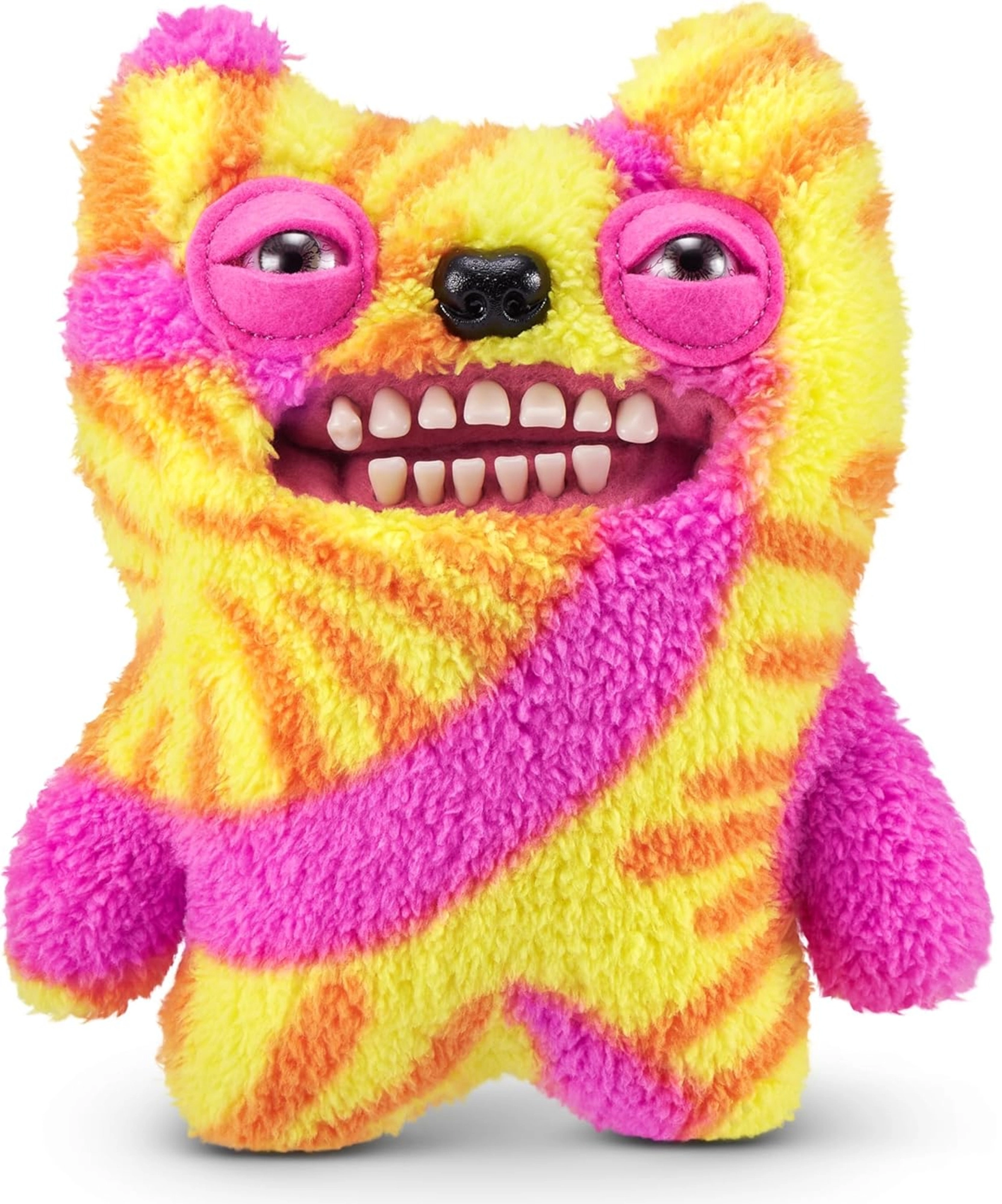 Monstrulețul de pluș FUGGLER Old Tooth din seria Laboratory Misfits Monster atrage din primul moment prin modelul tie-dye vârtej în nuanțe de galben, roz și portocaliu. Dinții din plastic contrastanți, botul negru de câine și ochii bulbucați îi conferă o expresie inconfundabilă, ușor grotescă, care captează imediat atenția.
