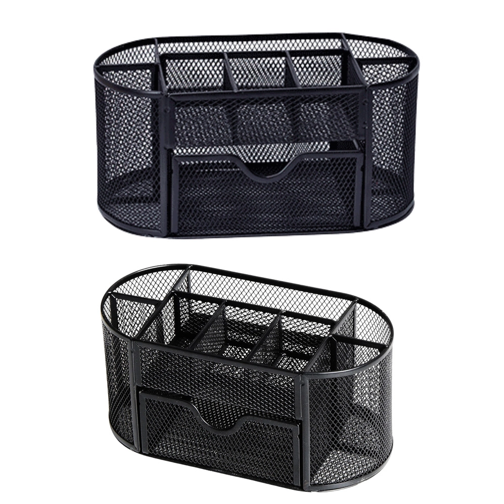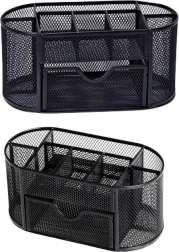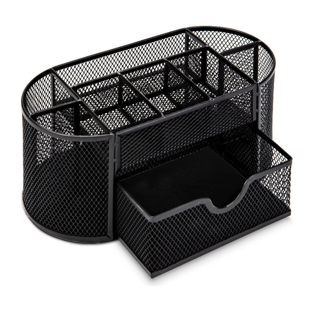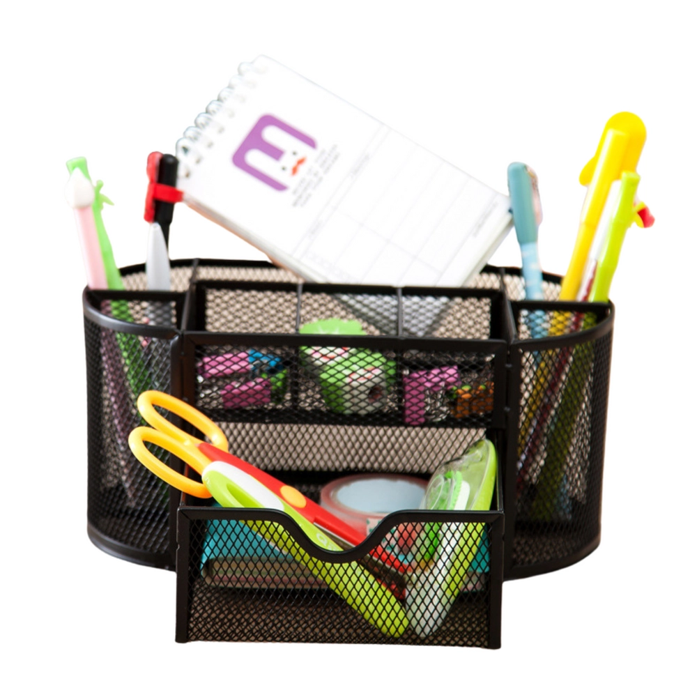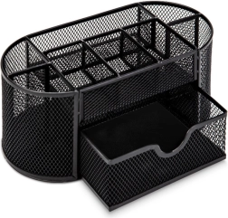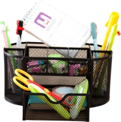 Păstrați ordinea pe birou cu un organizator compact cu dimensiunile 21 × 10,5 × 11 cm. Metal ușor vopsit cu plasă fină oferă o excelentă vizibilitate a conținutului, permite circulația aerului și se potrivește perfect cu orice stil de birou. Ideal pentru birou, spațiul de lucru de acasă și camera studentului.