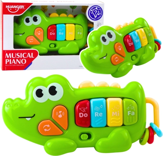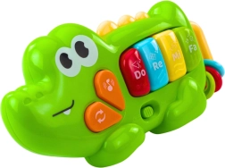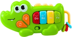 Pianina interactivă colorată în formă de crocodil va încânta orice mic explorator. Oferă patru clape Do, Re, Mi, Fa, melodii și sunete vesele și inele de manipulare suplimentare pentru dezvoltarea motricității fine. Datorită dimensiunilor compacte, este ideală pentru acasă și în călătorii, iar execuția sigură cu margini rotunjite este adaptată mânuțelor copiilor.