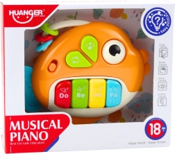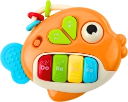 Pianinu muzical în formă de pește este jucăria muzicală ideală pentru început pentru cei mici. Cele patru clape clar marcate Do, Re, Mi, Fa redau, la apăsare, melodii vesele și sunete individuale, dezvoltând în mod natural simțul ritmului și percepția auditivă. Forma ergonomică de pește se potrivește perfect în mânuțele copiilor, iar corpul ușor și marginile netede, rotunjite, asigură o utilizare sigură și confortabilă.