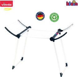 Uscătorul de rufe pentru copii Vileda, sub licența VILEDA, oferă o experiență realistă a activităților casnice într-o formă sigură pentru micii ajutoare. Este ideal pentru uscarea hăinuțelor pentru păpuși și a rufelor ușoare pentru copii, sprijinind dezvoltarea independenței și imitarea adulților.