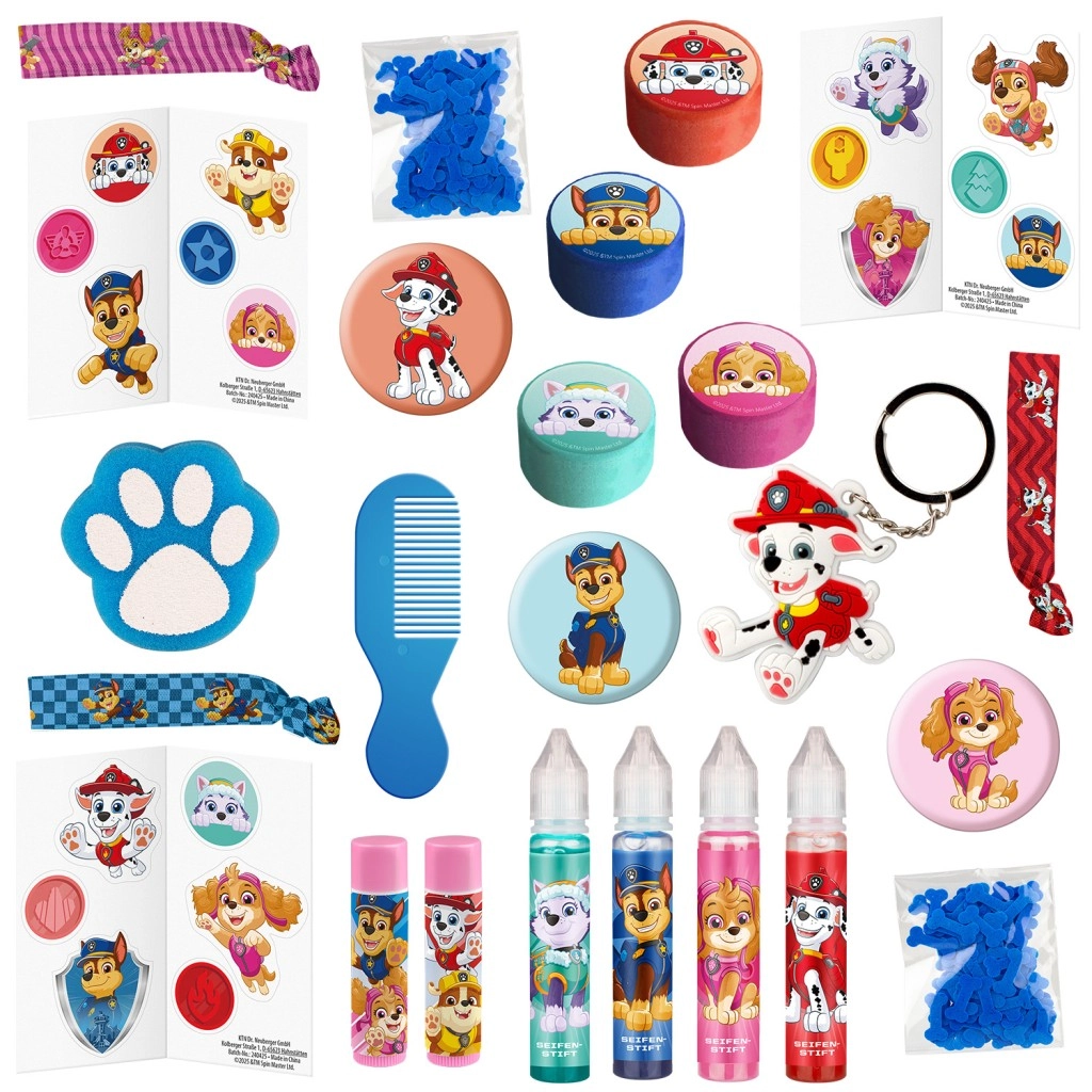 Calendarul advent PAW PATROL aduce copiilor zilnic bucurie sub formă de surprize practice și amuzante. Datorită mixului variat de produse cosmetice și accesorii, așteptarea Crăciunului va fi plină de arome, spumă și distracție. Totul este conceput pentru copii și pentru eroii lor preferați din Patrula Cățelușilor.