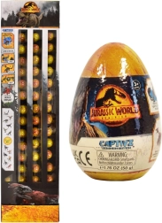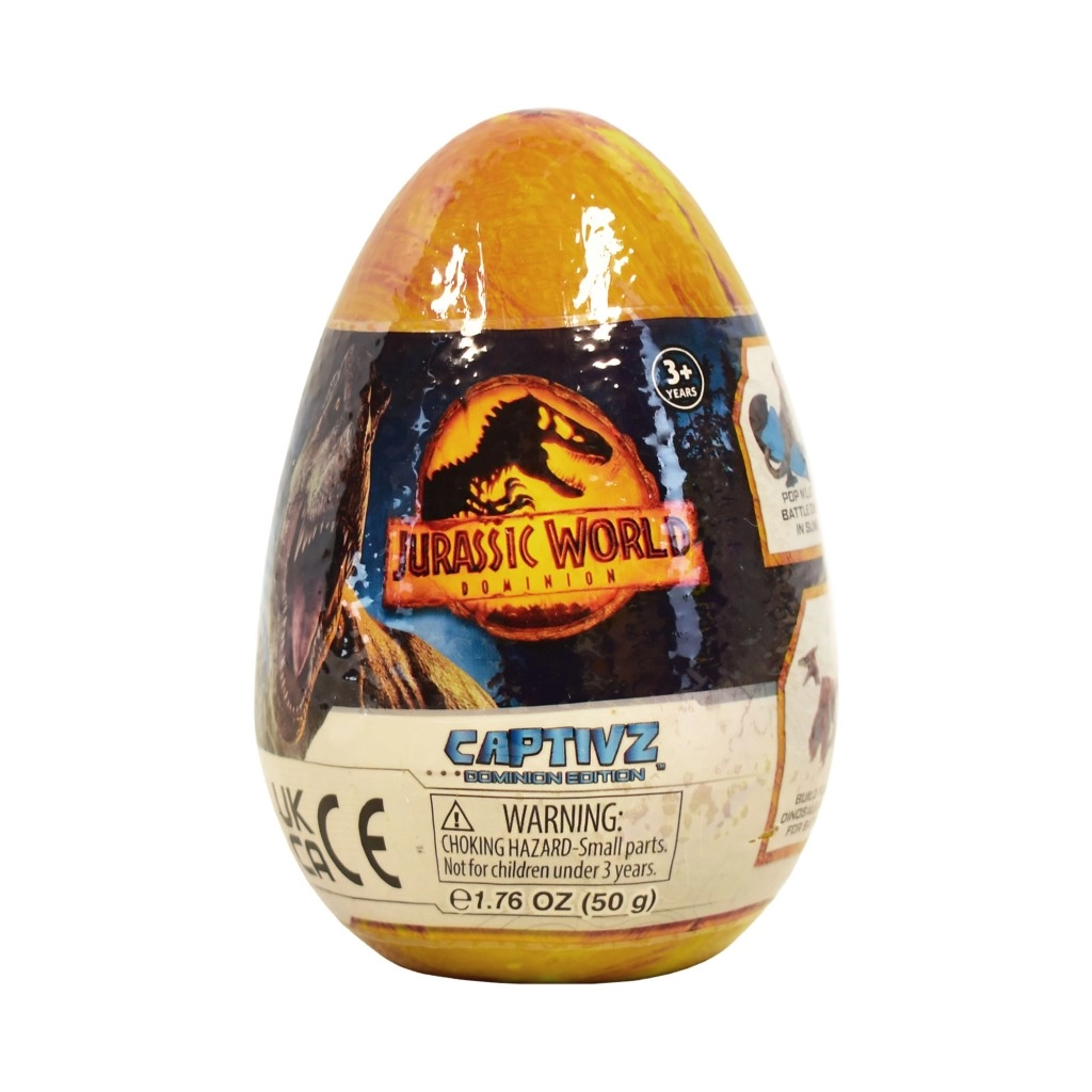Trăiește emoția descoperirii cu oul misterios cu slime JURASSIC WORLD. Fiecare ou ascunde o figurină de dinozaur de asamblat ascunsă într-un slime unic (cel mai des chihlimbariu sau BioSyn Lab), un jeton de luptă și un ghid pentru colecționari. Personajele sunt inspirate din filmul Lumea Jurasică: Dominația și îi vor încânta pe fanii de toate vârstele.