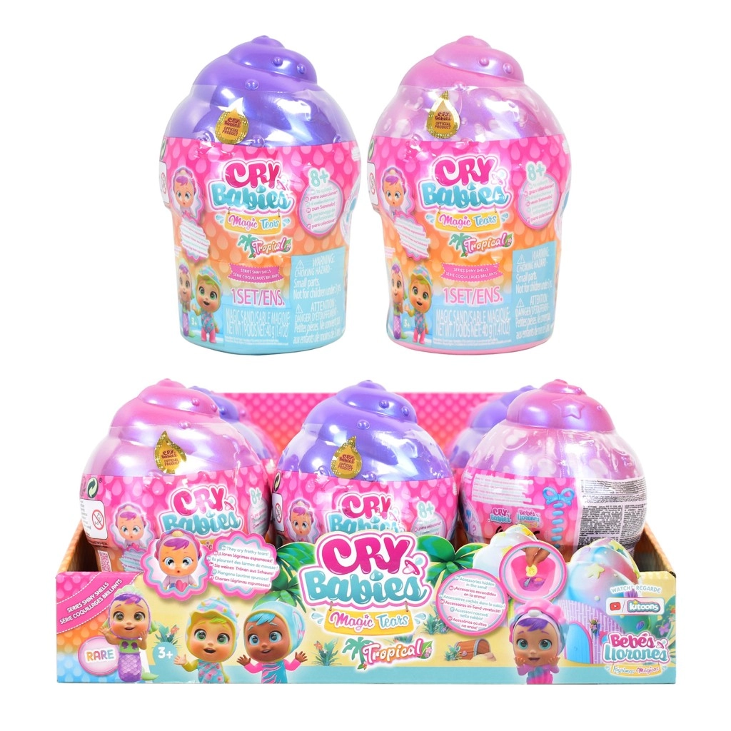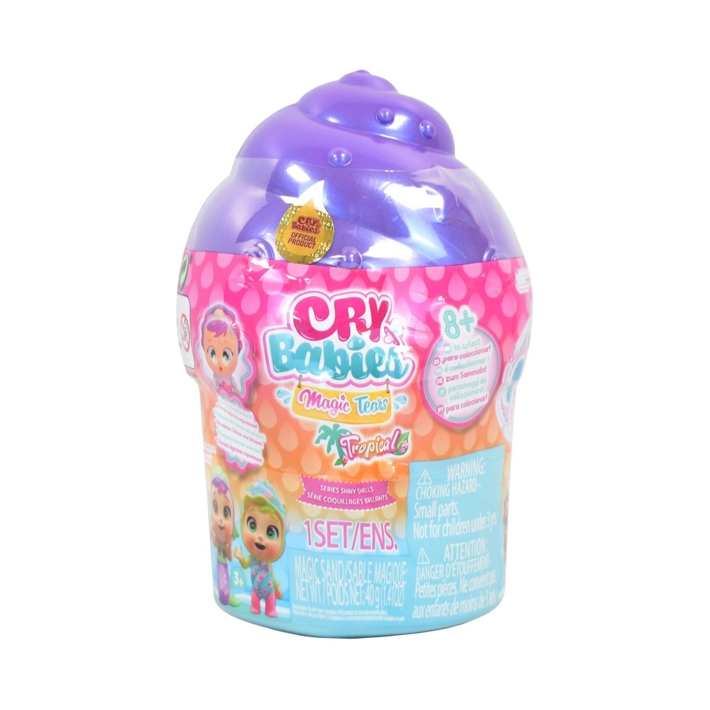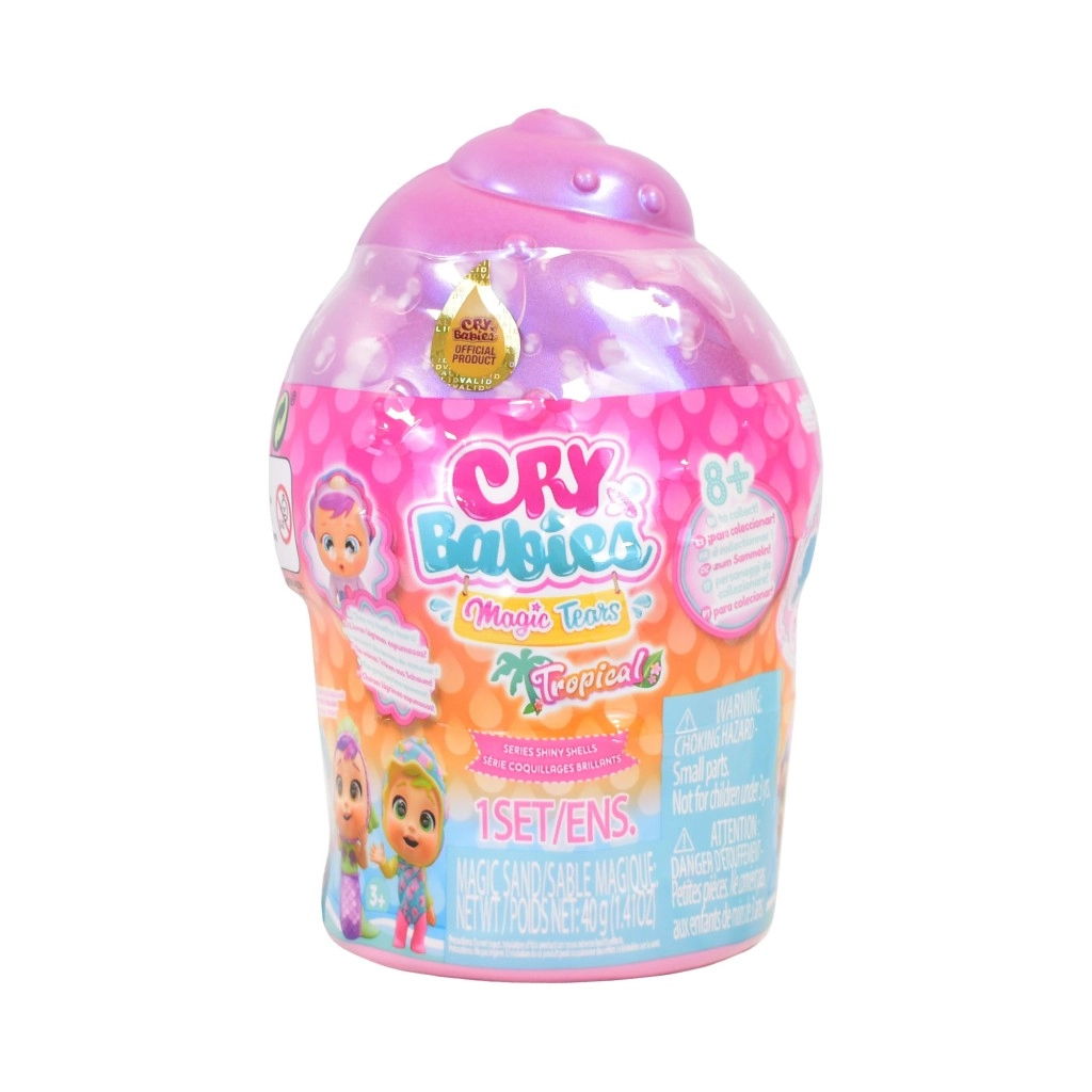 Păpușa Cry Babies Magic Tears Shiny Shell aduce copiilor bucuria despachetării și o lume fantastică plină de accesorii. Fiecare păpușă este ascunsă într-o capsulă sidefată în formă de scoică, care, odată deschisă, dezvăluie peste 9 surprize ascunse în nisip. După umplerea biberonului cu apă și o ușoară apăsare a burticii, păpușa varsă lacrimi efervescente – un detaliu spectaculos ce stimulează jocul emoțional și de îngrijire.