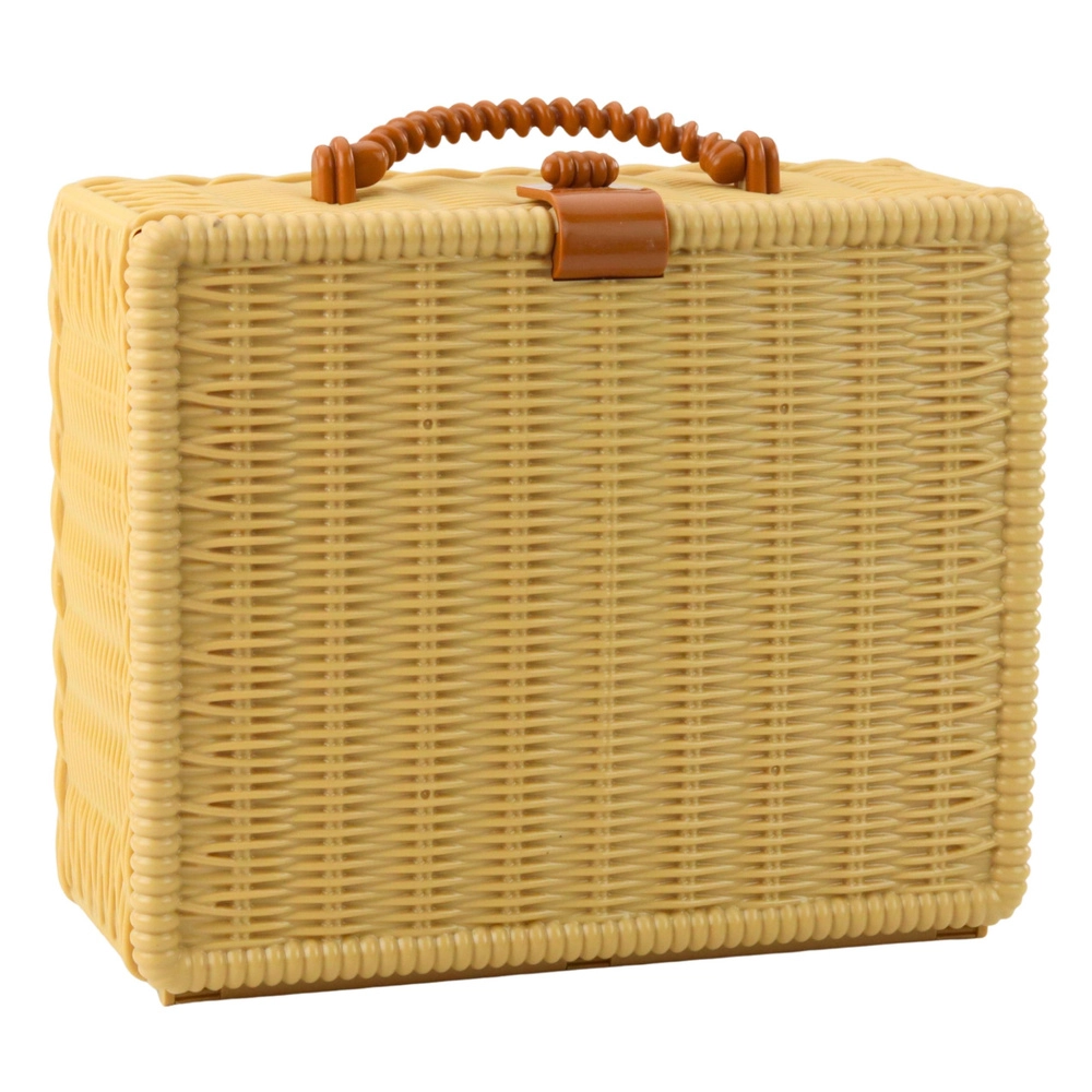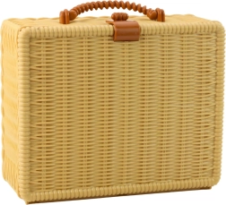 Coșul elegant, cu aspect împletit, capac și mâner practic, păstrează toate piesele bine organizate. Copiii pot lua setul oriunde – în grădină, în excursii sau în vacanță. Elementele colorate sprijină dezvoltarea imaginației, învățarea culorilor și abilitățile sociale în timpul jocului cu prietenii.