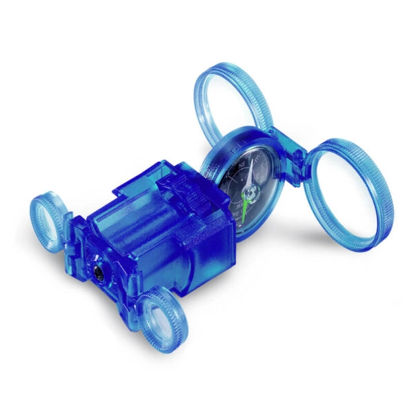 Descoperă lumea cu acest dispozitiv compact pentru copii, 7 în 1. Oferă binoclu, lupă, busolă, oglindă de mărire, plan de observație, oglindă de semnalizare și vizor stereoscopic. Ideal pentru micii exploratori, în excursii sau în grădină.