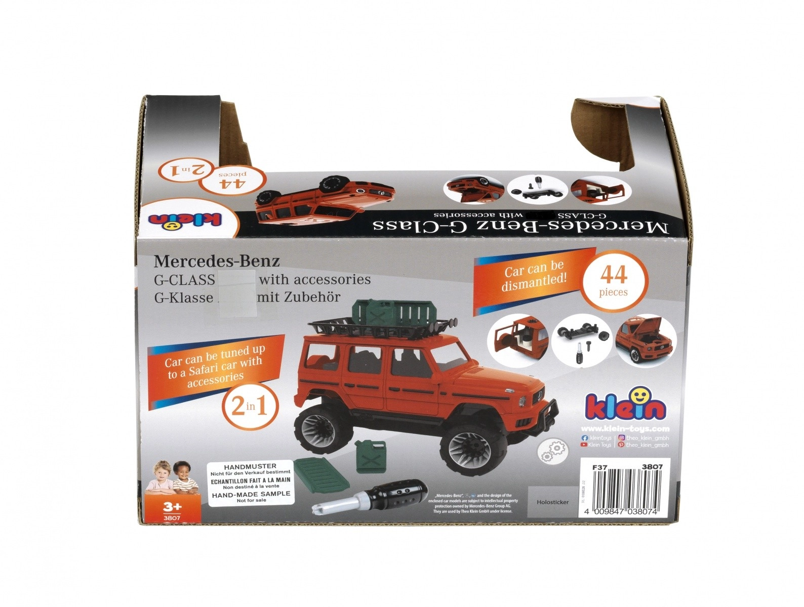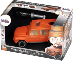 Modelul la scară 1:24 impresionează prin execuție detaliată în stilul MERCEDES-BENZ, piese care se deschid și roți care se rotesc liber pentru o rulare realistă. Piesele robuste din plastic sunt concepute pentru asamblare și demontare repetată, astfel încât copiii pot crea propriile modificări ale vehiculului – de la un SUV civil la un stil off-road mai dur.