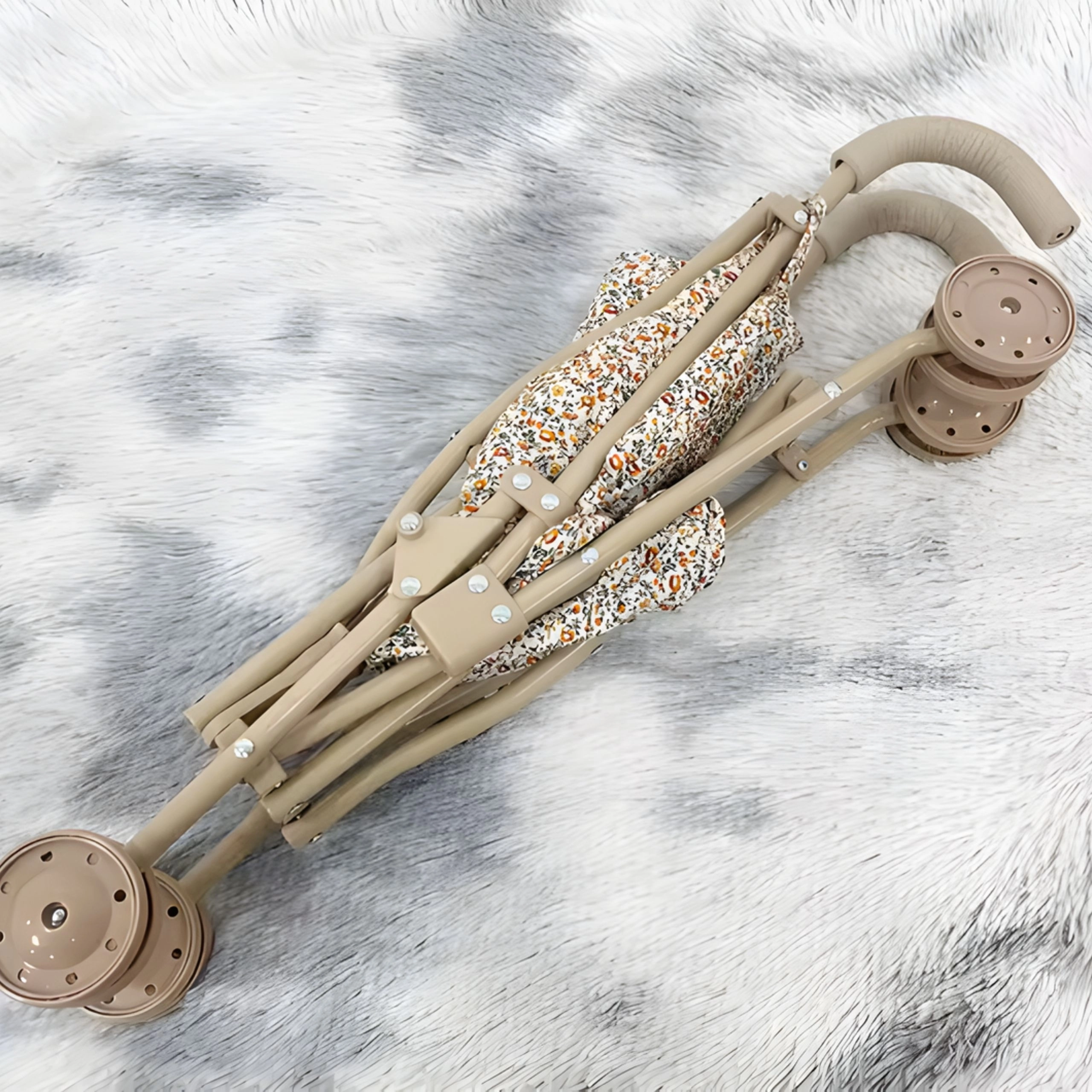 Căruciorul ușor și compact pentru păpuși WOOPIE în stil Vintage Flower va încânta micile îngrijitoare. Datorită cadrului ușor, construcției pliabile și celor patru roți duble, se manevrează ușor atât acasă, cât și afară. Mânerele confortabile și țesătura crem cu model floral adaugă farmec jocului și stimulează imaginația și empatia.