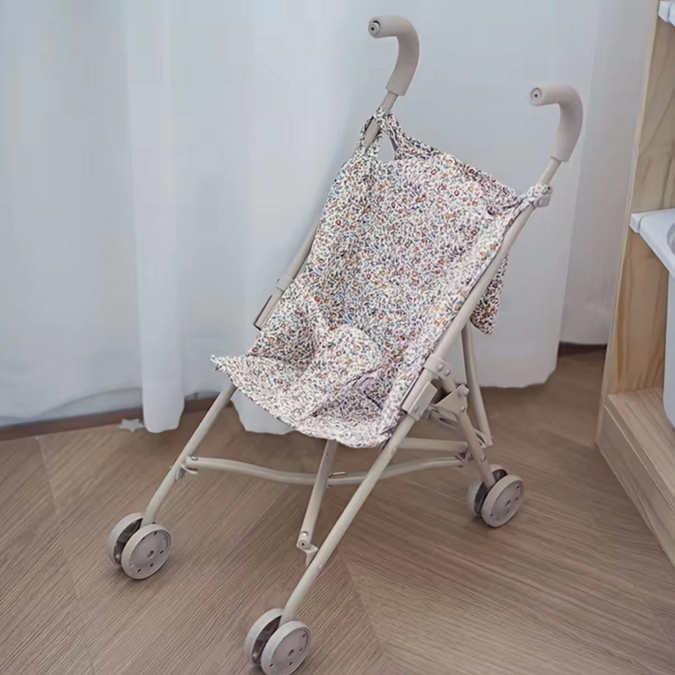 Țesătura de husă crem, cu model floral, conferă căruciorului un aspect atemporal. Joaca cu căruciorul dezvoltă în mod natural creativitatea, empatia și motricitatea fină și susține independența și abilitățile sociale.