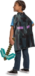 Intră în lumea MINECRAFT cu un set autentic care va încânta orice pasionat. Târnăcopul de diamant reproduce fidel obiectul din joc, iar datorită mânerului confortabil, ergonomic, se ține bine în mână. Pelerina neagră cu motiv ENDERMAN oferă costumului un aspect iconic.