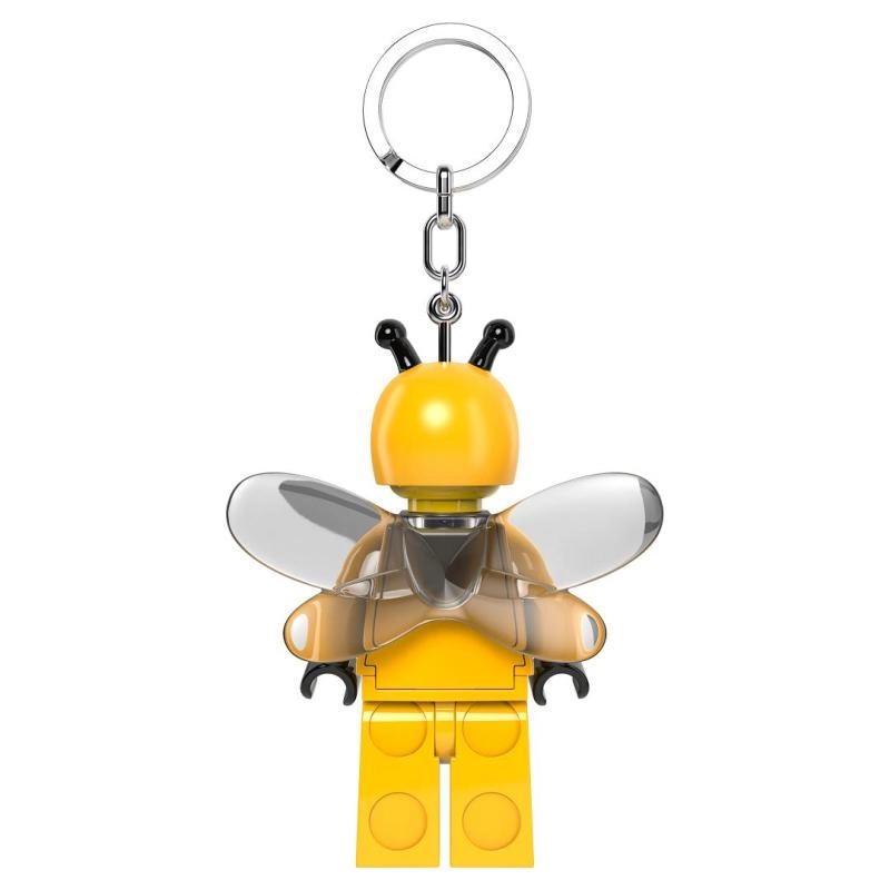 Minifigurină detaliată în costum negru-galben, cu aripi și antene, care adaugă un stil jucăuș cheilor tale.
