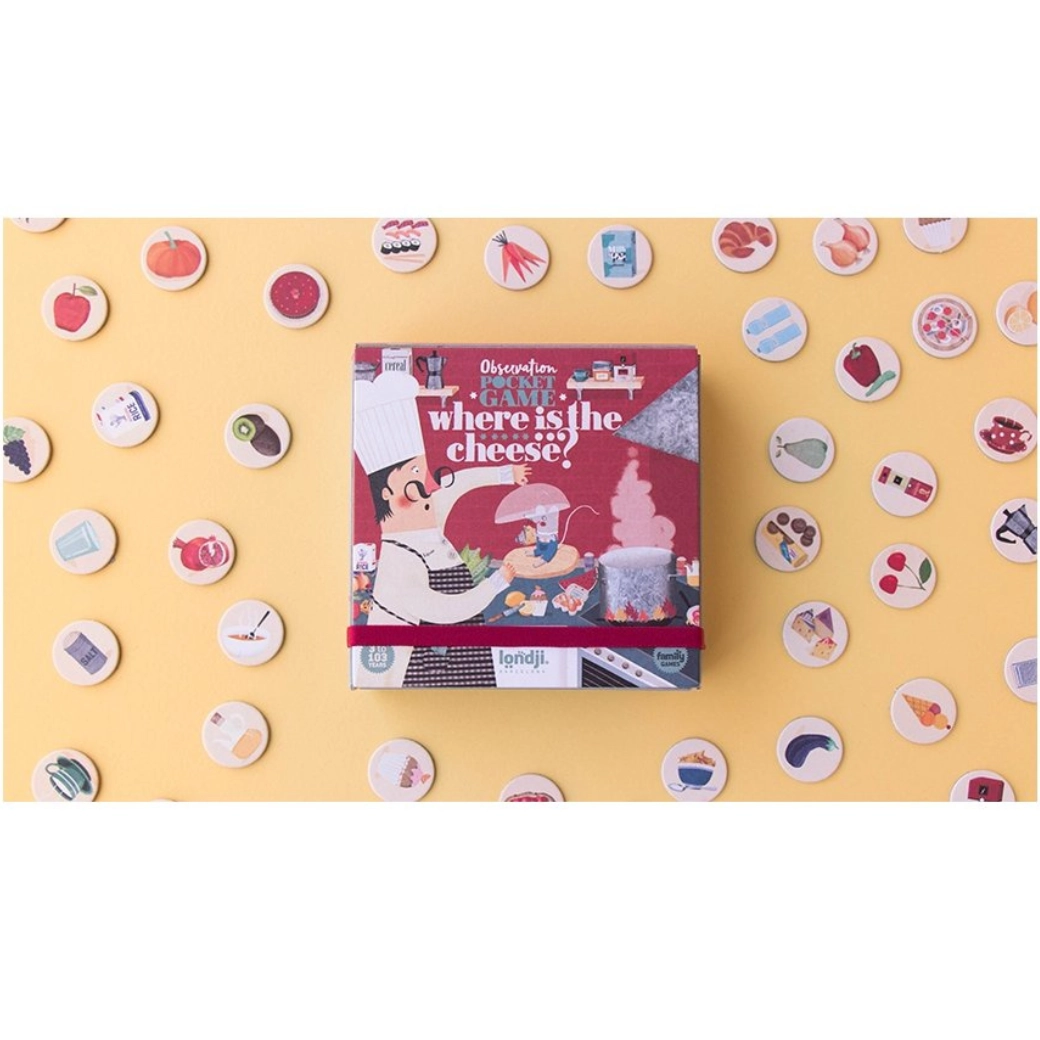 Cine găsește brânza primul? Jocul de buzunar LONDJI Unde este brânza? aduce distracție vioaie și captivantă în orice moment. Jucătorii concurează în istețime, atenție și viteză – o activitate ideală pentru excursii sau în sala de așteptare. Formatul compact încape ușor în buzunar sau rucsac.