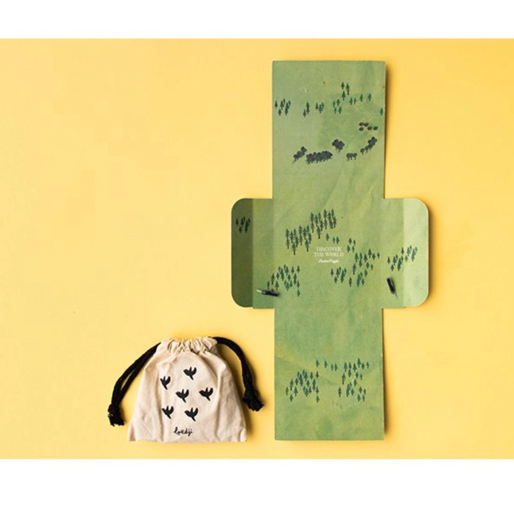 Descoperă lumea noastră colorată, piesă cu piesă, cu puzzle-ul de buzunar de la Londji. Ambalaj compact, 100 de piese și ilustrații frumoase care susțin concentrarea, răbdarea și cunoașterea geografiei – ideal pentru călătorii și pentru acasă.