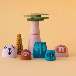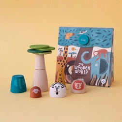 Acest puzzle din lemn, cu design stilat, le aduce copiilor bucuria de a descoperi lumea animalelor sălbatice. Execuția de calitate și culorile plăcute susțin curiozitatea naturală și capacitatea de concentrare. Piesele sunt adaptate mâinilor mici ale copiilor, pentru a fi ușor de prins și asamblat.
