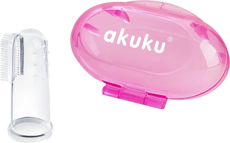 Prima periuță de dinți Akuku cu husă practică este ideală pentru îngrijirea cavității bucale a bebelușilor încă de la naștere. Este fabricată din silicon și nu conține BPA, fiind blândă cu gingiile și sigură pentru utilizarea zilnică.