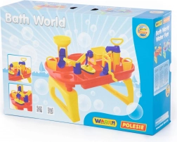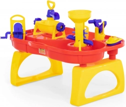 Setul este realizat la calitate înaltă Wader, cu margini netede și piese din plastic rezistent, potrivite pentru utilizare cu apă și nisip. Dimensiunile compacte 53 × 35 × 39 cm facilitează depozitarea și manipularea, iar picioarele stabile și vasul solid asigură joaca în siguranță. Combinațiile de culori pot varia (albastru sau roșu) în funcție de stocul curent.