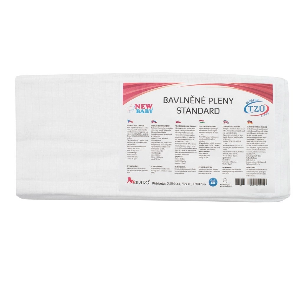 Scutecele din bumbac NEW BABY de calitate standard sunt o alegere de încredere pentru orice trusou. Materialul fin și respirabil din 100% bumbac este delicat cu pielea sensibilă a copiilor, absoarbe bine și se usucă rapid. Datorită dimensiunii universale de 60 × 80 cm, le puteți folosi nu doar ca scutec clasic, ci și ca aleză, lavetă sau păturică ușoară.