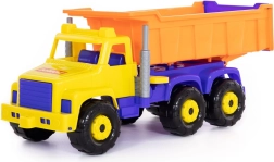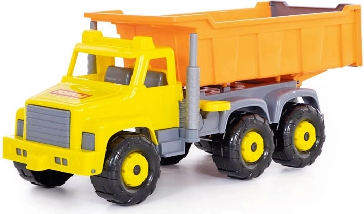 Mare camion basculant din plastic pentru micii constructori, cu benă rabatabilă și hayon spate deschizibil și cabină rabatabilă cu blocare și acces la „motor”. Ideal pentru joacă în interior și în aer liber, atât în cameră, cât și în groapa cu nisip. Fără propulsie, certificat pentru copii de la 3 ani.