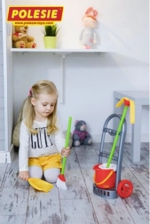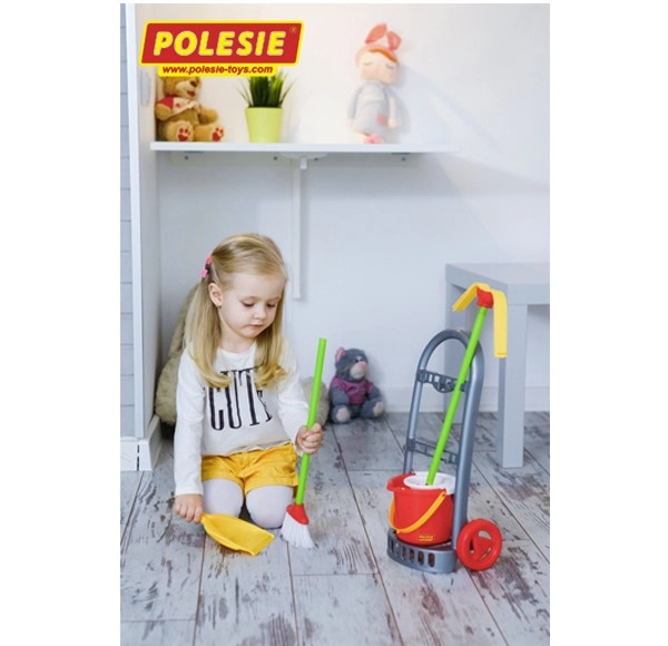 Căruciorul de curățenie pentru copii Wader este un ajutor grozav pentru micii asistenți în gospodărie. Construcția stabilă din plastic masiv rezistă chiar și jocului intens al copiilor, iar datorită dimensiunilor compacte se depozitează și se transportă ușor.