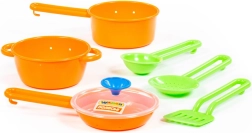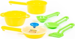 Setul de veselă pentru bucătar Wader îi va încânta pe toți micii iubitori ai gătitului. Datorită plasticului solid și sigur pentru sănătate, jucăria este sigură, ușoară și ușor de întreținut. Dimensiunea compactă de aproximativ 19 cm este ideală pentru mâinile copiilor și stimulează dezvoltarea imaginației și a abilităților sociale în jocurile de rol de bucătar.